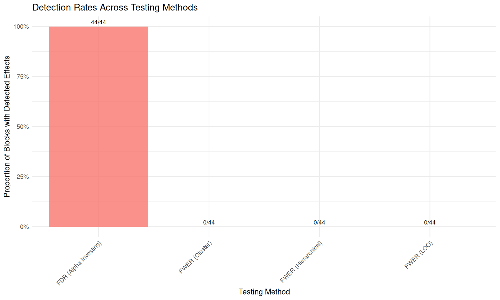 The manytestsr package implements hierarchical testing procedures for detecting treatment effects across multiple experimental blocks while controlling error rates. This approach is particularly useful when you have:
