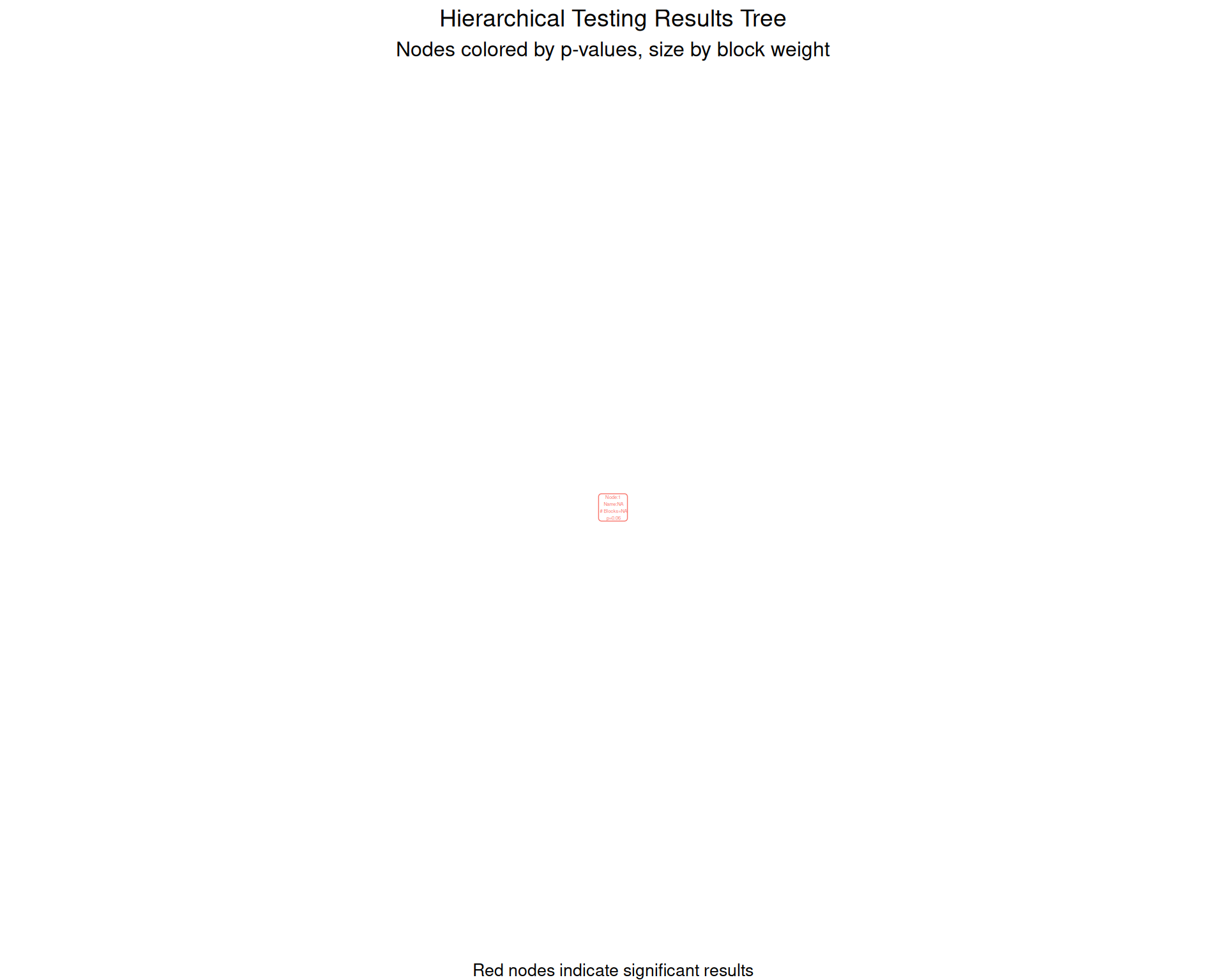 This hierarchical testing framework provides a principled approach to multiple testing while maintaining interpretability and controlling error rates. The flexible design allows adaptation to various experimental contexts and research questions.