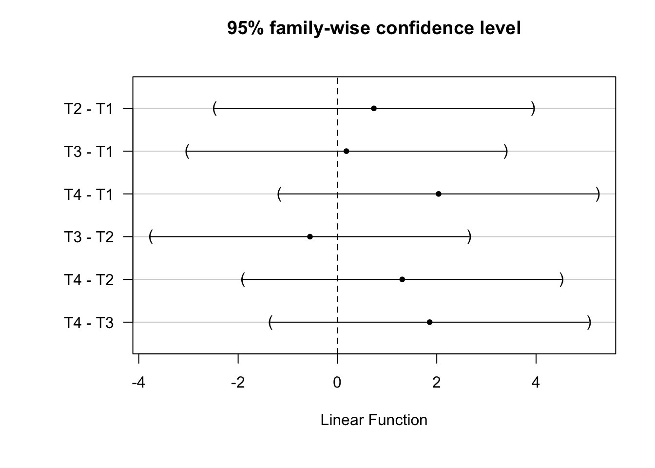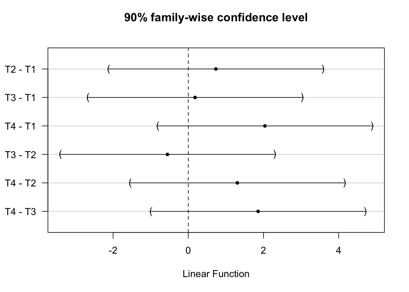 We focus on the classic Tukey HSD procedure for this illustration, which assumes equally sized groups. There are modifications to apply this procedure in other settings, such as the Tukey-Kramer test.↩︎